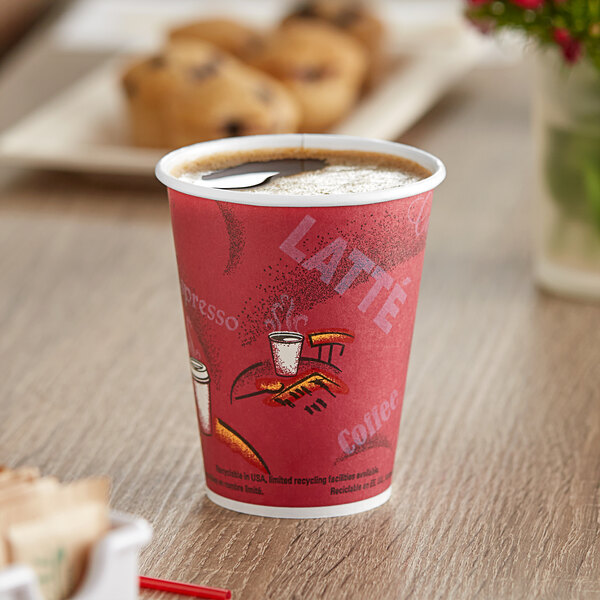 Dart Solo 378SI-0041 Bistro Print 8 oz. Poly Paper Hot Cup – 1000/Case