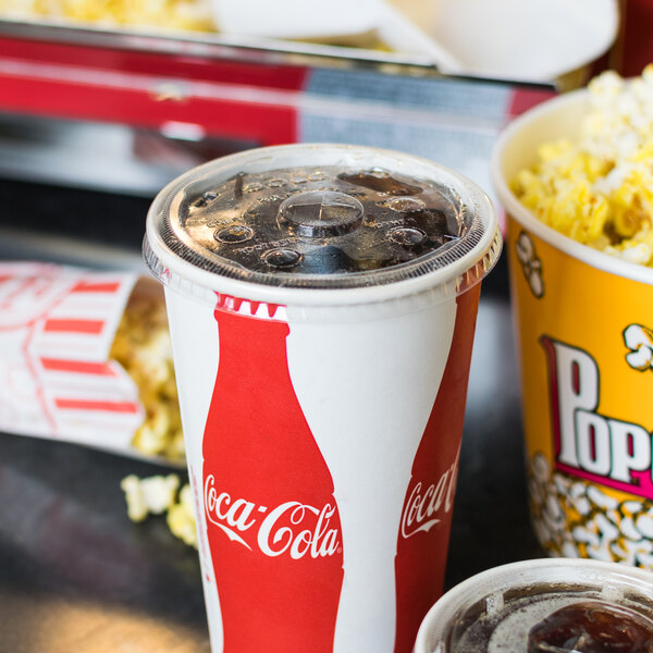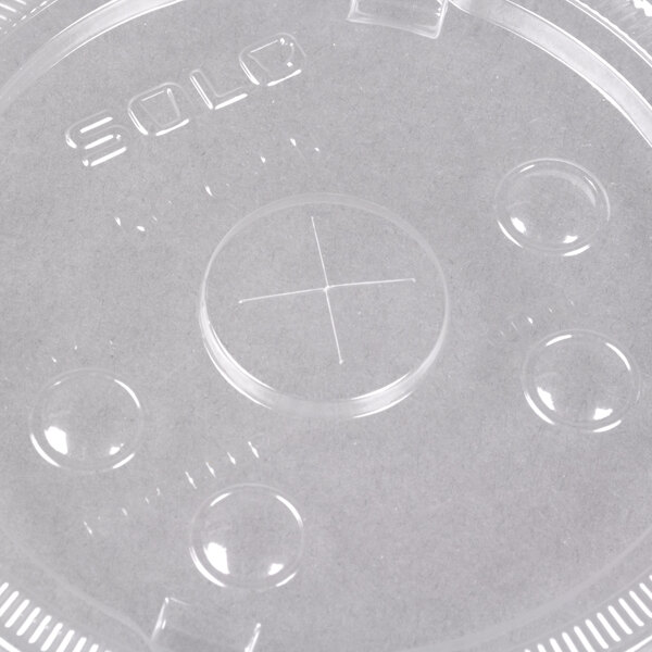 Dart Solo 635NS 28-32 oz. Clear Flat Plastic Lid with Straw Slot and Identification Buttons – 600/Case