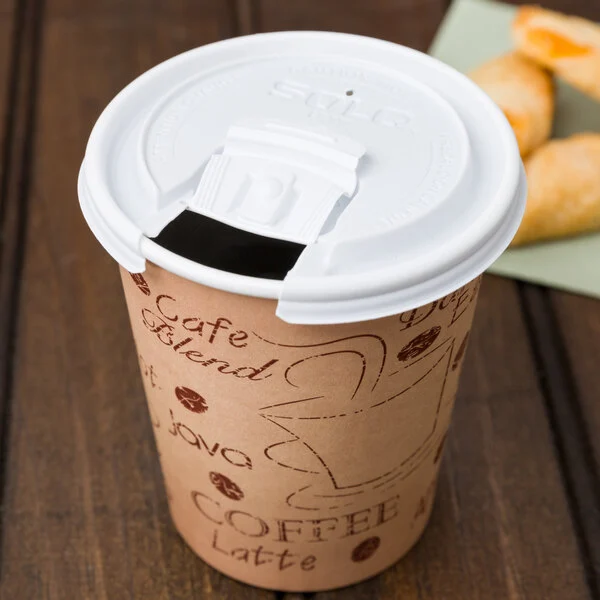 TOP IT OFF WITH A SOLO LID! Solo offers a lid featuring a scored tab that is pushed back and locked into place for use. One lid fits the 5 most popular cup sizes reducing the number of lid skus that operators need to stock.