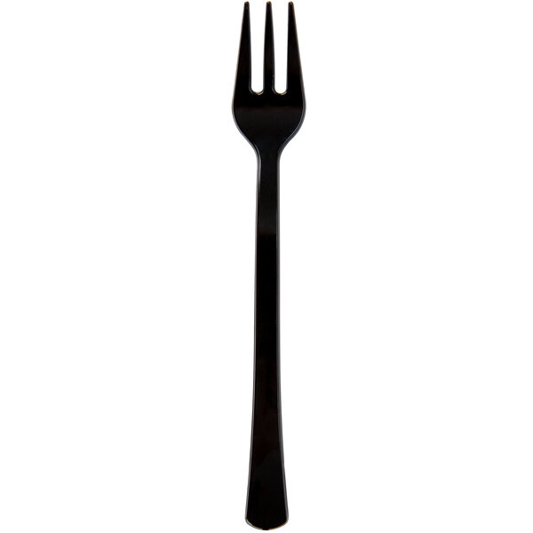 Do you want the cake and eat it too? Make sure your miniatures, dessert or petite samples are not gone with one spoon. Be confident it’s enjoyed bite by bite with these Fineline Tiny Temptations 6500-BK 3 7/8″ Tiny Tines Black Plastic Tasting Fork. With that sweet trend, it makes sure that your product makes a statement! Along with it’s curved handle and perfect width, this product can stand out on your delicious edibles making it inviting and tempting. Treat yourself; tantalize your guests; tempt every spectator as you transform your table with these terrific miniature disposable dishes that maximize every opportunity for creativity in serving.